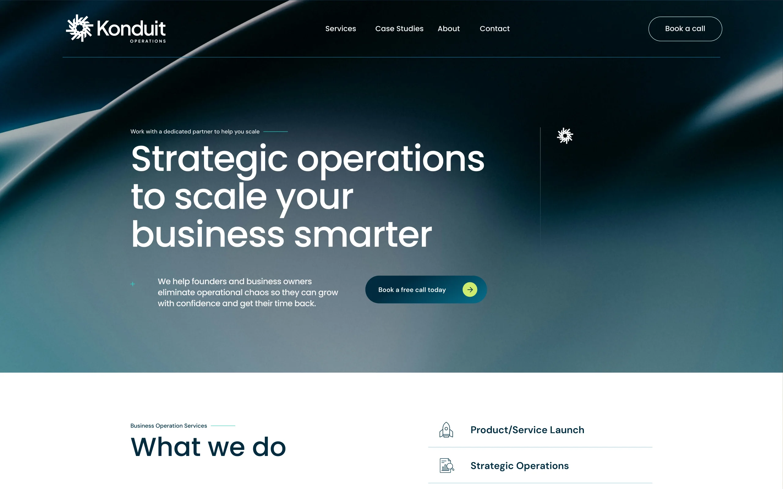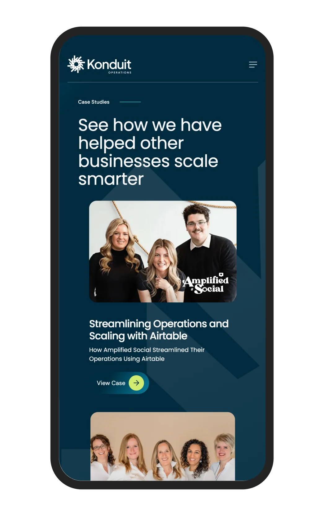 I approached the build with a "systems-as-a-service" mindset. I created a robust Webflow CMS architecture that empowers the Konduit team to update their services and case studies independently. By utilizing a modular component library, I ensured that every new entry maintains 100% brand consistency. This systematic approach allows the platform to grow at the speed of the business, ensuring a high-performance user experience across all devices.